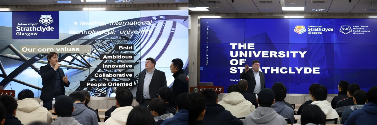 Professors from the University of Strathclyde delivered a presentation to undergraduate and postgraduate students of the school. They provided a brief overview of the university’s academic profile, core research areas, and achievements, with a focus on promoting the undergraduate-postgraduate-PhD joint programs with WHUT. Details were shared on program application requirements, study modes, and training objectives.